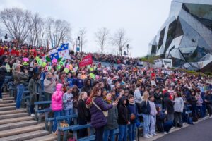 Le Grand Chant Commun réunit l’ensemble des élèves participants autour d’un répertoire partagé, travaillé collectivement lors de deux séances de préparation d’une heure organisées les deux premiers jours du festival. Encadré par une cheffe de chœur professionnelle, cet atelier permet à tous les participants, quels que soient leur âge ou leur niveau, de vivre une expérience chorale commune hors normes. La restitution finale a lieu dans le parc du Futuroscope, lors d’un temps fort emblématique célébrant la fraternité et réunissant plus de 2 000 participants.